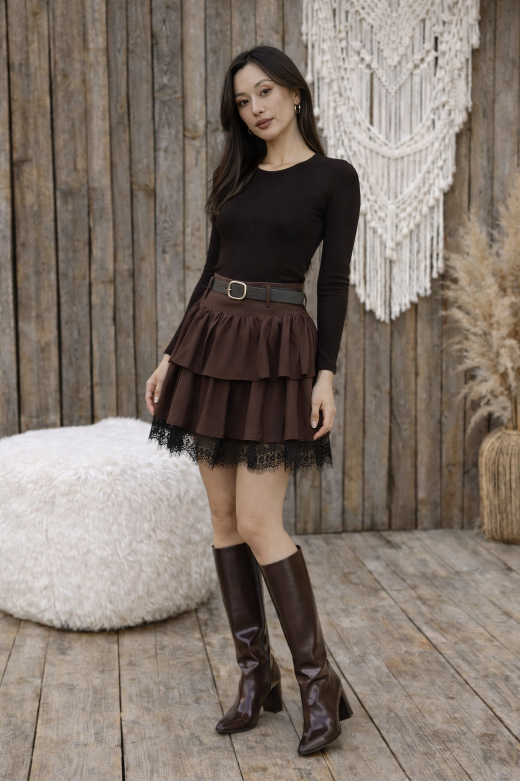 Katlı tasarımı ve zarif dantel detayıyla öne çıkan bu mini etek, feminen ve şık bir görünüm sunar. Bel kısmındaki kemer detayı eteğe modern bir dokunuş katarken katlı yapısı hareketli ve hacimli bir duruş sağlar. Günlük kombinlerden özel davet kombinlerine kadar farklı stillerle kolayca uyum sağlayan dikkat çekici bir parçadır.Ürün ÖzellikleriKalıp: Rahat