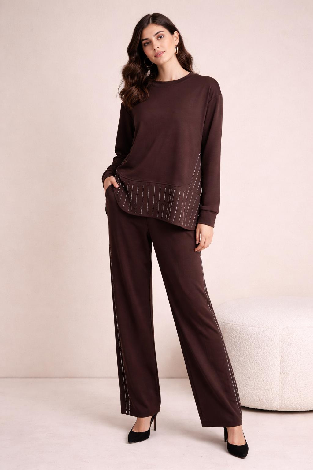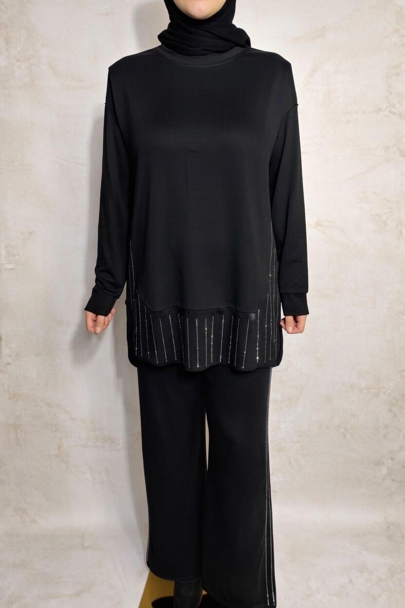 Şıklık ve konforu bir araya getiren OYSHO Taş Detaylı Takım, günlük kullanımdan özel anlara kadar her ortamda stilinizi tamamlar. Yan kısımlarındaki zarif taş detaylarıyla sade şıklığı ön plana çıkarırken, esnek ve yumuşak dokusuyla gün boyu rahatlık sunar.